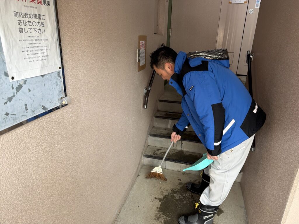 作業終了後に掃き掃除をして作業終了です。