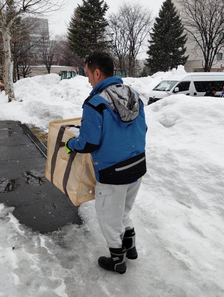 丁寧に梱包作業し外に並べて札幌市の環境事業公社の収集車に処分をお願いします。